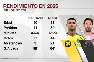 ESPN统计今年梅西与C罗数据↓