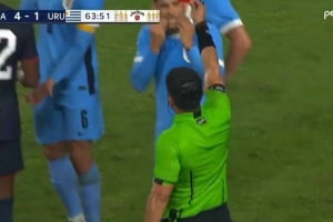 此役第64分钟,本坦库尔铲到对方球员脚踝,被裁判直接出示红牌罚下,目前乌拉圭1-5落后于美国。