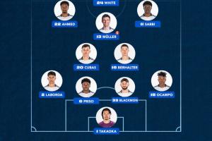 温哥华白浪首发:1-高丘阳平、2-拉沃尔达、6-普里索、33-布莱克蒙、18-奥坎波、20-库巴斯、16-伯哈尔特、22-艾哈迈德、13-穆勒、11-萨比、24-布莱恩·怀特